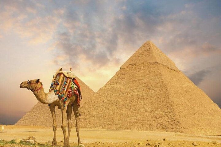 Experience the wonders of ancient Egypt with our exclusive Day Tour to the Giza Pyramids, Camel Ride, and Egyptian Museum in Cairo. Enjoy the convenience of all pickup and drop-off transfers, ensuring a hassle-free journey from start to finish. Our knowledgeable private tour guide will accompany you throughout, providing insightful commentary and answering any questions you may have. Immerse yourself in the magnificence of the iconic Giza Pyramids and embark on a delightful 20-minute camel ride around the Great Pyramid. Explore the captivating collections at the renowned Egyptian Museum, where you'll witness the treasures of Tutankhamun and other significant artifacts. Travel comfortably in our newest model private A/C vehicles and stay hydrated with a complimentary bottle of water. Uncover the secrets of the ancient Egyptians on this exceptional tour, making unforgettable memories along the way.