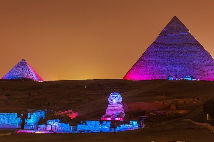 Sound and Light Show at Giza Pyramids from Cairo